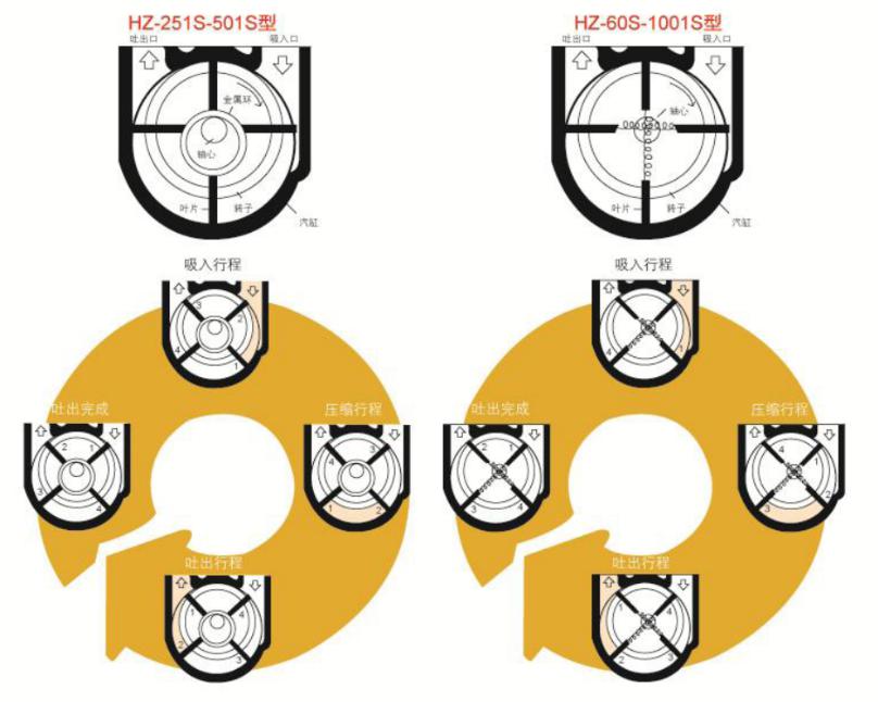 回轉(zhuǎn)風(fēng)機(jī)靠汽缸內(nèi)偏置的轉(zhuǎn)子偏心運(yùn)轉(zhuǎn),并使轉(zhuǎn)子槽中的葉片之間的容積變化將空氣吸入、壓縮、吐出。在運(yùn)轉(zhuǎn)中利用鼓風(fēng)機(jī)的壓力差自動(dòng)將潤(rùn)滑油送到滴油嘴,滴入汽缸內(nèi)以減少摩擦及噪聲,同時(shí)可減少汽缸內(nèi)氣體的回流。